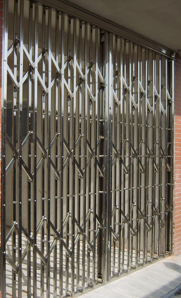 主要型材采用不锈钢材料,能锁能开,使用方便,外型美观,多种样式,坚固耐用。关上起防护防盗作用,打开时占门口空间很小,不影响采光。