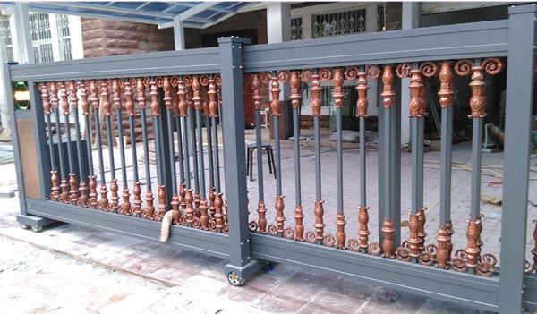 3. 镀锌云龙平移门:材料坚固、价格低廉、配件简单。最致命的缺点是生锈,镀锌钢板门框生锈后连带门板生锈,密封条槽还得单独加,通常情况下都没有密封条。轨道材料也是镀锌钢板,热胀冷缩现象比较严重,使用寿命较短。要求低的厂房里使用。